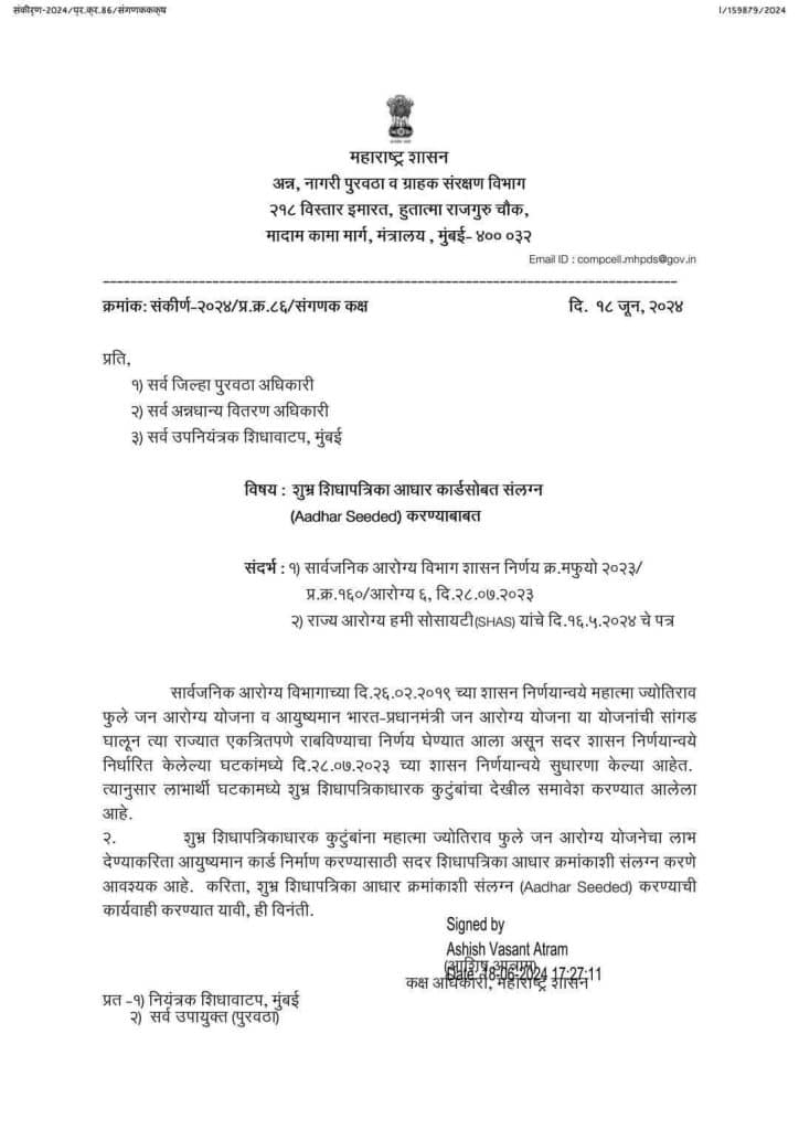 - A family without having any kind of ration card but having domicile certificate of Maharashtra.