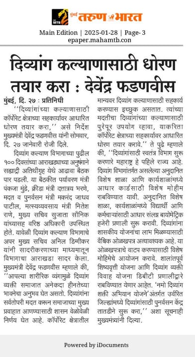 Divyang Yojanas by Fadnavis impacting the disabled and the society at large