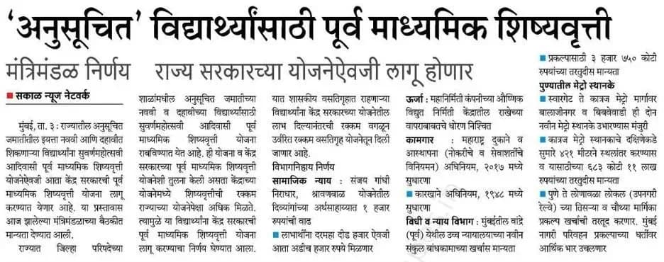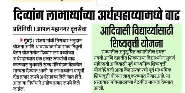 The state cabinet, in a meeting held on September 3, 2025, decided to increase the financial assistance under the Sanjay Gandhi Niradhar Grant Yojana and Shravanbal Seva State Pension Yojana by Rs 1000. Currently, the beneficiaries (destitute and vulnerable individuals, including the poor, orphans, elderly, disabled, and women in distress) receive Rs 1500 per month. From October 2025 onwards, this amount will increase to Rs 2500 p.m. To meet this expense, the state government has approved a provision of Rs 570 crore.